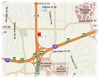 Proceed under 400 to Peachtree-Dunwoody Road (first intersection)